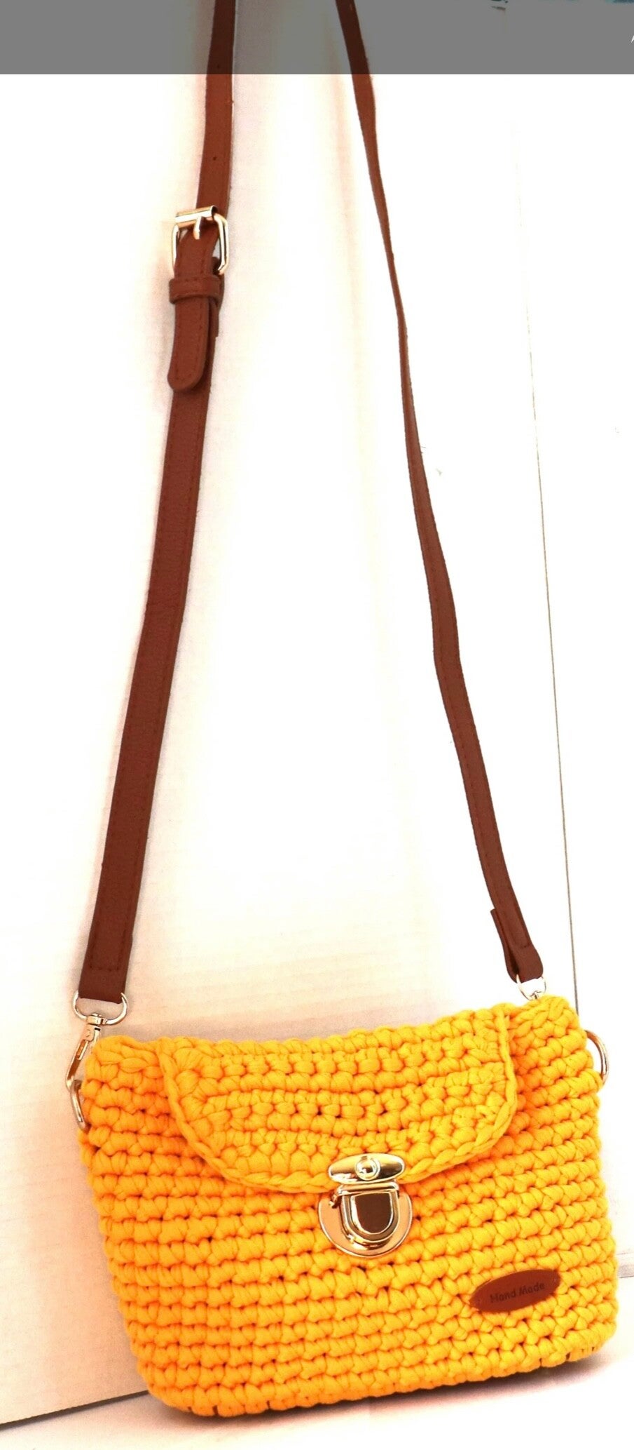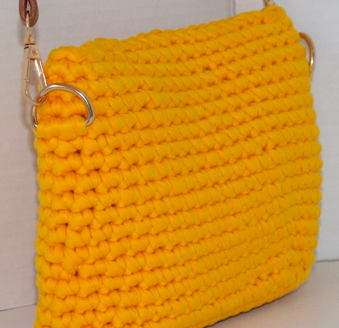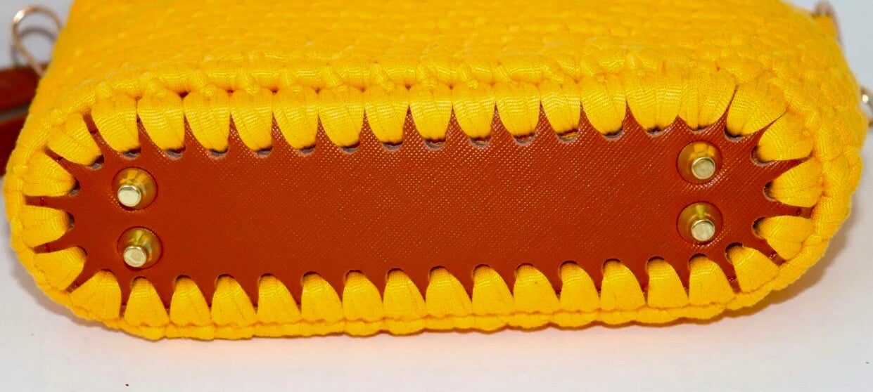 Thic Nylon Corn Handmade Handbag, Gold accessories, Lined with pocket inside, Strap in Leather adjstable, Base in Leather.
