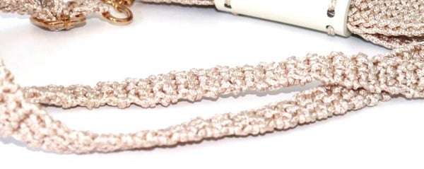 Nylon Chanpagne Handmade Hangbag, Gold Accessories, Lined with Pockect inside, Strap in Nylon in the same Yarn adjustable, Base iand top in Leather.