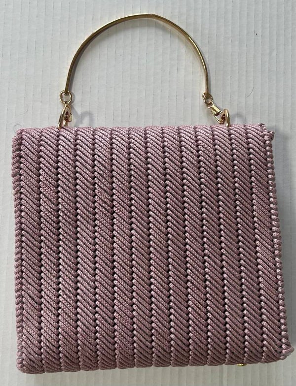 Old Rose Handmade Tote Purse Handbag, Nylon with Canva, Lined, Assesspries in Gold, Shaple Handle in Metal. Size: 7.5" x 6.5"
