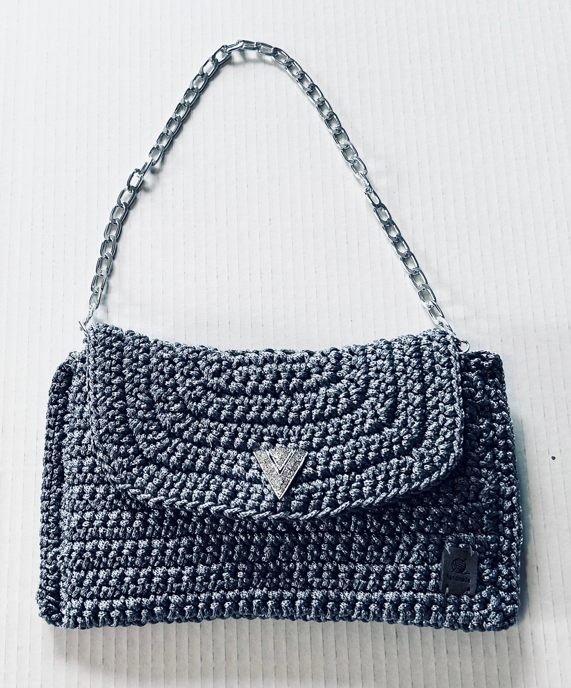 Nylon Lava color Handmade Hangbag, Lined, Silver Assessories, Strap in Metal, for the short for the hand or the shoulder, can be used without the strap in de hand. Size: 9.5" x 6"