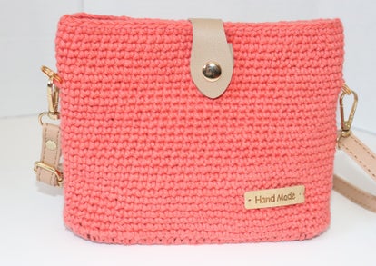 Tore Rust color, Handmade Hangbag in PU leather and Nylon crochet, Short strap as totes, using for close a snap in gol color, has a littlr bag for use inside in the same yarn, clouse with a bukle and snap. Size: 10.5" x 10"